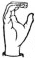На ћирилици написано КОСТА МУМАЛО састоји се из 11 слова [?]. Исписано ћириличном једноручном азбуком за глувонеме: